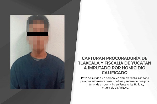 CAPTURAN PROCURADURÍA DE TLAXCALA Y FISCALÍA DE YUCATÁN A IMPUTADO POR HOMICIDIO CALIFICADO