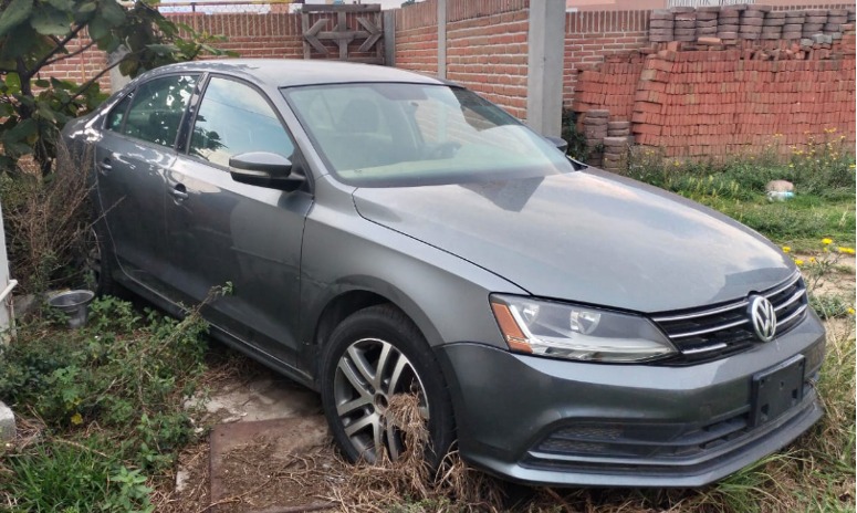 Elementos de Investigación de la PGJE se trasladaron a la colonia El Carmen Aztama, de la localidad referida, donde aseguraron una unidad vehicular marca Volkswagen, tipo Jetta, modelo 2017, color gris Oxford, que contaba con reporte de robo.