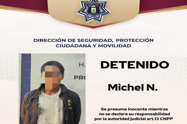 Elementos de la Dirección de Seguridad Pública Municipal pusieron a disposición a un masculino de 32 años de edad, identificado como Michel N., por alterar el orden público y cometer faltas a la autoridad, durante una intervención realizada en la comunidad de San Gabriel Cuauhtla.