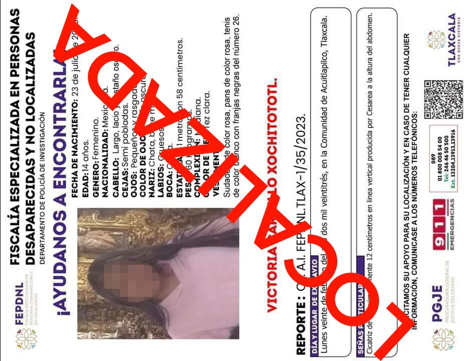 UBICA PGJE A MENOR DE EDAD REPORTADA COMO NO LOCALIZADA
