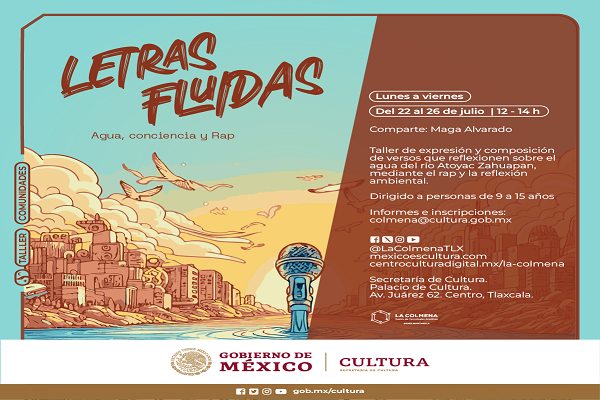 La Secretaría de Cultura de Gobierno de México, a través de La Colmena: Centro de Tecnologías Creativas Grace Quintanilla, invita a niñas, niños y jóvenes de 9 a 15 años a participar en el taller “Letras Fluidas: Agua, conciencia y Rap”, un espacio para aprender los principios básicos de la composición y creación de rimas […]