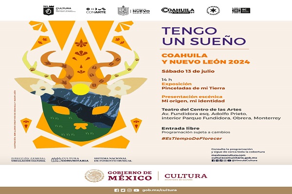 Este 13 de julio de 2024, dará inicio Tengo un sueño Coahuila y Nuevo León 2024 “Mi origen, mi identidad”, uno de los 27 eventos biestatales y estatales en el país que forman parte del Festival Tengo un sueño 2024. Este evento es organizado por la Secretaría de Cultura del Gobierno de México, a través […]