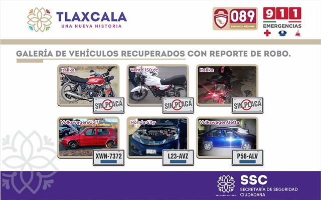 LA SSC RECUPERA ESTE FIN DE SEMANA SEIS UNIDADES CON REPORTE DE ROBO VIGENTE