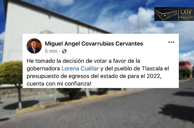 El coordinador del grupo parlamentario del Partido del Trabajo (PT) de la LXIV Legislatura, Miguel Ángel Covarrubias Cervantes, votará a favor del Presupuesto de Egresos para el ejercicio fiscal 2022 que envió el poder Ejecutivo al Congreso del Estado de Tlaxcala. A través de su cuenta oficial en la red social Facebook, el legislador manifestó […]