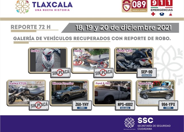 SSC MANTIENE ACCIONES PARA LA RECUPERACIÓN DE VEHÍCULOS ROBADOS