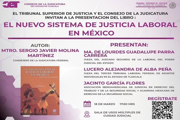 El Tribunal Superior de Justicia y el Consejo de la Judicatura del Estado (TSJ-CJE), presentarán el libro “El Nuevo Sistema de Justicia laboral en México”, obra de Sergio Javier Molina Martínez, que explica de forma ordenada y sistemática, el contenido de las reformas en materia de justicia laboral, libertad sindical y negociación colectiva.El texto que […]
