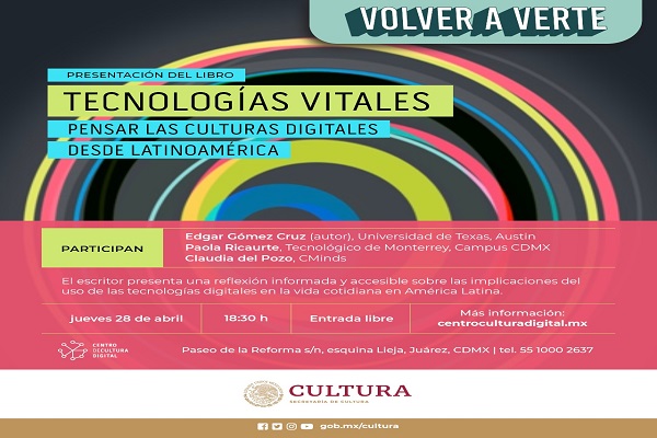 El Centro de Cultura Digital presentará el libro: Tecnologías Vitales.