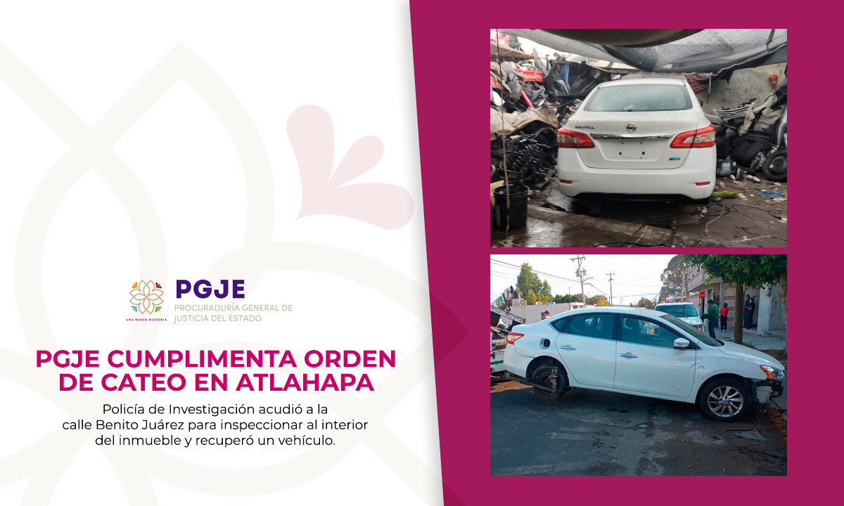 Policía de Investigación acudió a la calle Benito Juárez para inspeccionar al interior del inmueble y recuperó un vehículo._La Procuraduría General de Justicia del Estado (PGJE), a través de la Policía de Investigación adscrita a la Unidad Especializada para la Investigación, Aseguramiento, Recuperación y Devolución de Vehículos Robados y Recuperados Región Sur, cumplimentó una orden […]