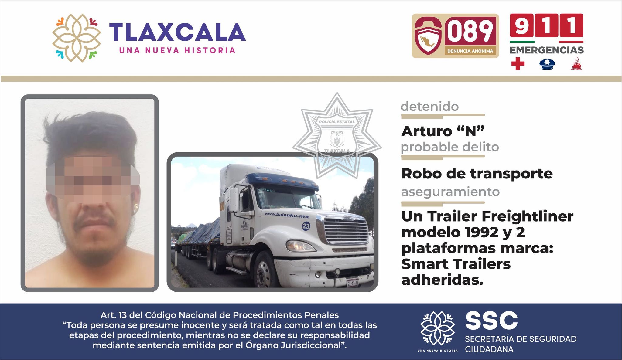 SSC DETIENE EN YAUHQUEMEHCAN A PRESUNTO RESPONSABLE DE ROBO DE VEHÍCULO DE CARGA