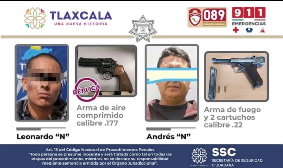 El primer detenido portaba un arma calibre .22 con dos cartuchos útiles, mientras que la segunda persona portaba una réplica de arma de fuego.La Secretaría de Seguridad Ciudadana (SSC) detuvo en el municipio de Apizaco y Totolac, a dos personas por su probable responsabilidad en el delito de portación ilegal de arma de fuego; esto […]
