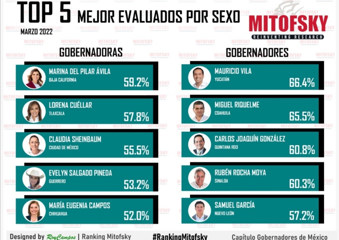 LORENA CUÉLLAR CISNEROS LA SEGUNDA GOBERNADORA MEJOR EVALUADA EN MÉXICO: MITOFSKY