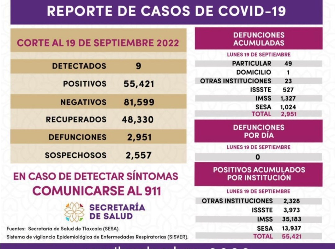 REGISTRA SESA 9 CASOS POSITIVOS Y CERO DEFUNCIONES DE COVID-19 EN TLAXCALA