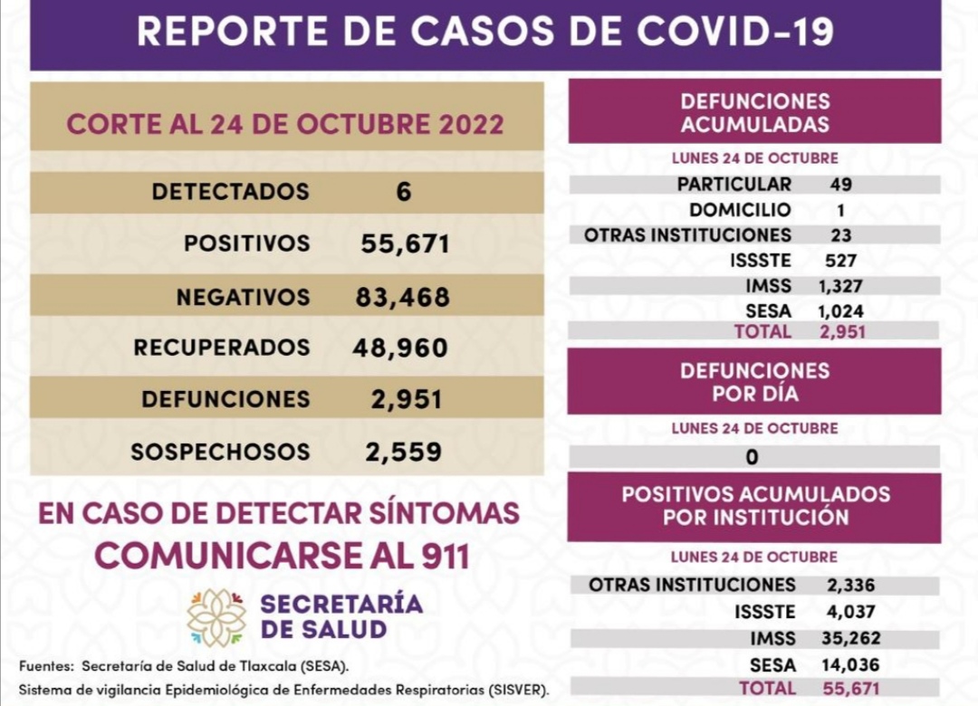 REGISTRA SESA 6 CASOS POSITIVOS Y CERO DEFUNCIONES DE COVID-19 EN TLAXCALA