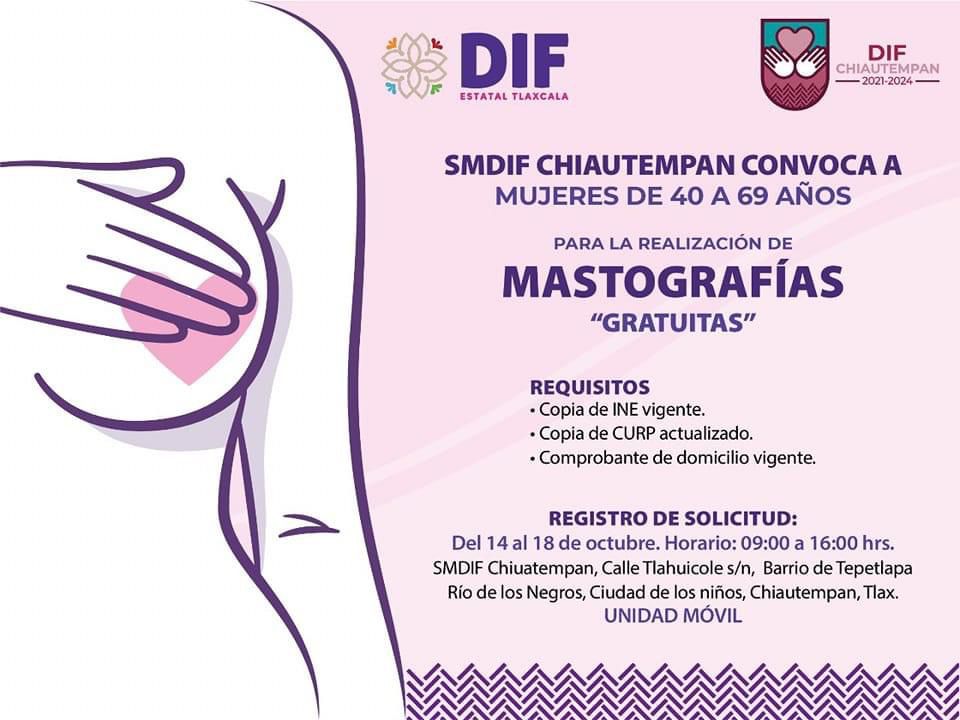 Convoca SMDIF Chiautempan a campaña de mastografía gratuita
