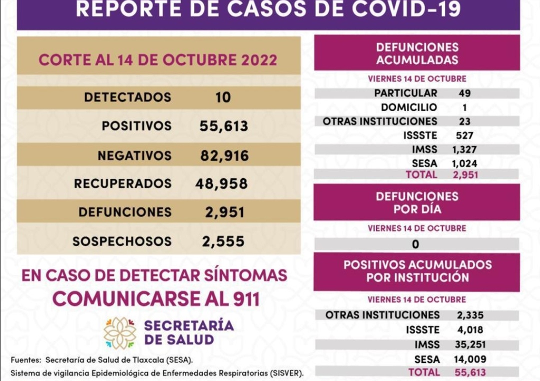 REGISTRA SESA 10 CASOS POSITIVOS Y CERO DEFUNCIONES DE COVID-19 EN TLAXCALA