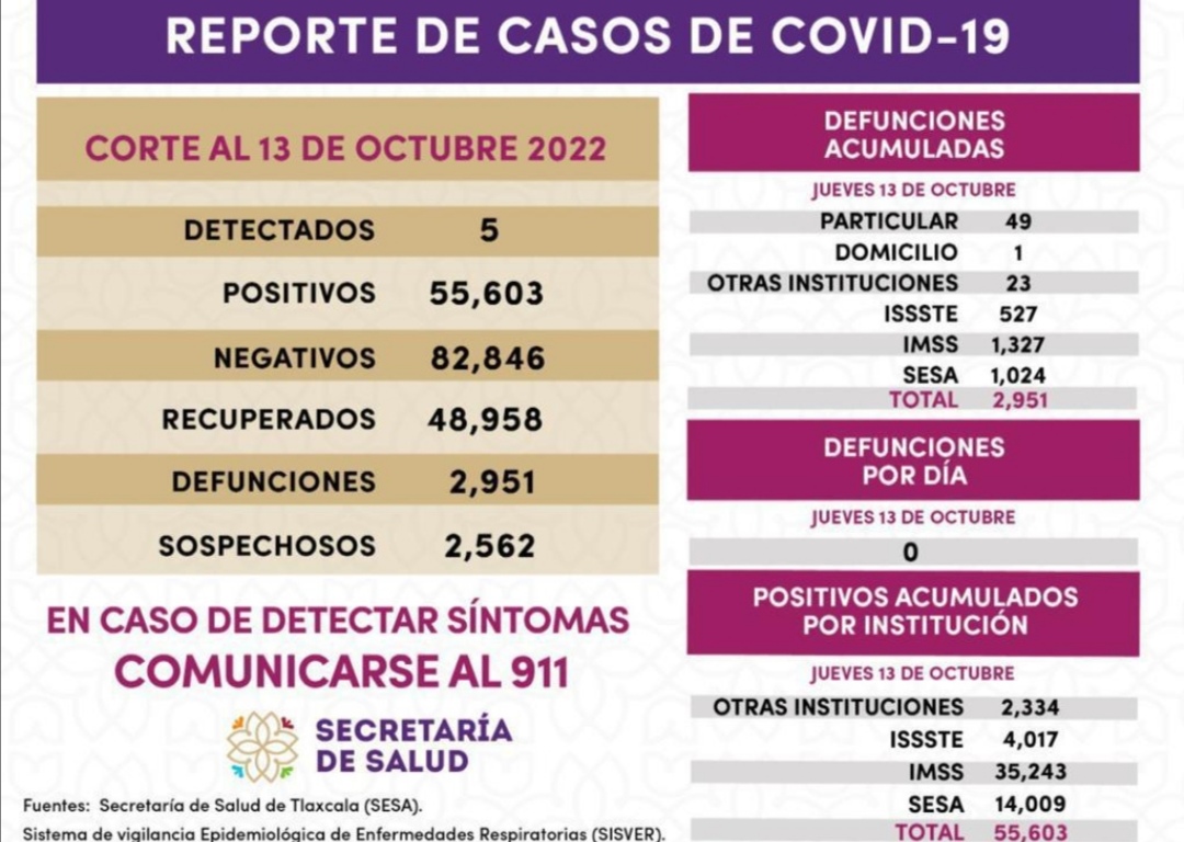REGISTRA SESA 5 CASOS POSITIVOS Y CERO DEFUNCIONES DE COVID-19 EN TLAXCALA