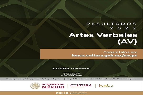Resultados de las convocatorias Artes Verbales y Músicos Tradicionales Mexicanos 2022