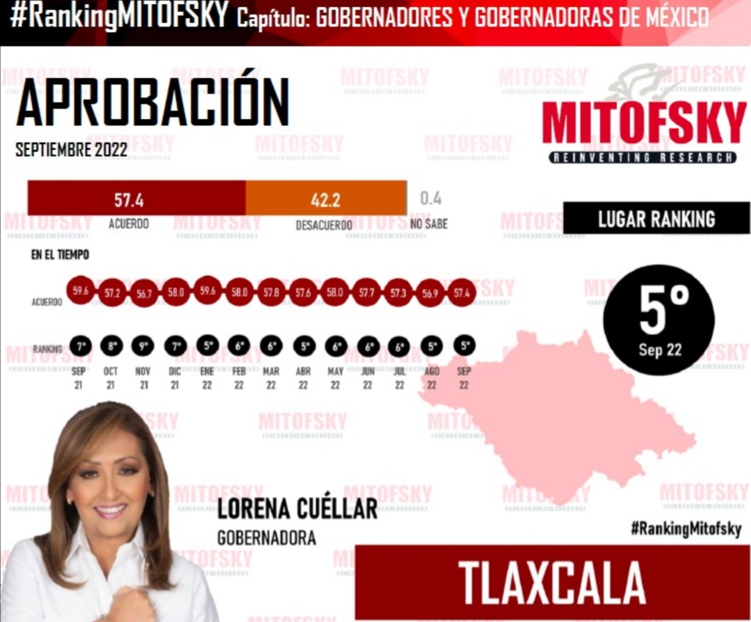 ItatíCuahutle/ElCensor.- Tres estudios de la casa encuestadora divulgan que la gobernadora tiene un nivel alto de aceptación con 57.4 por ciento. La titular del Ejecutivo local, Lorena Cuéllar Cisneros, ha mantenido niveles de aprobación altos entre los tlaxcaltecas, así lo difunde la casa encuestadora Consulta Mitofsky, que precisa que al cierre de septiembre la mandataria […]