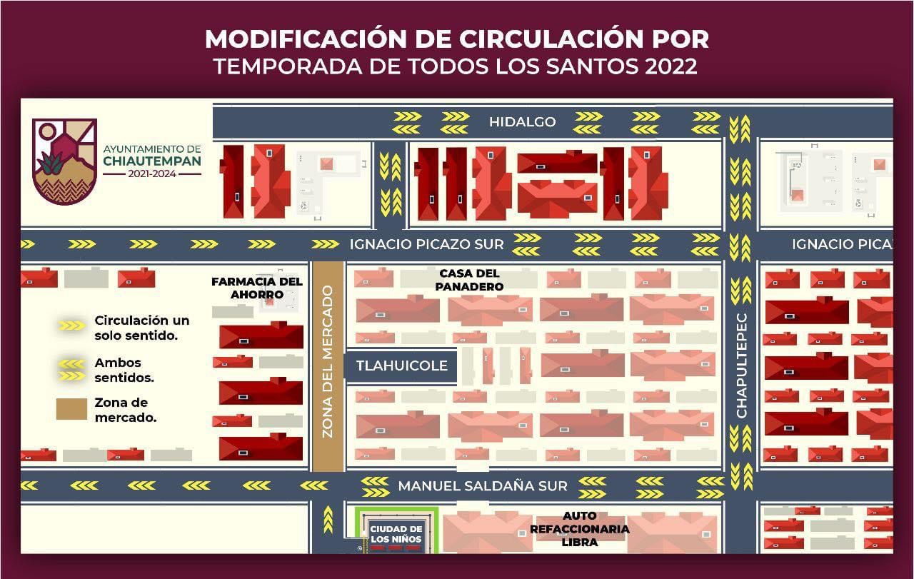 Anuncian cambios a la circulación en Chiautempan por mercado de temporada de “Todos Santos”