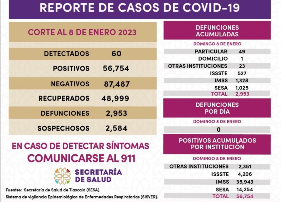 REGISTRA SECTOR SALUD 60 CASOS POSITIVOS Y CERO DEFUNCIONES DE COVID-19 EN TLAXCALA