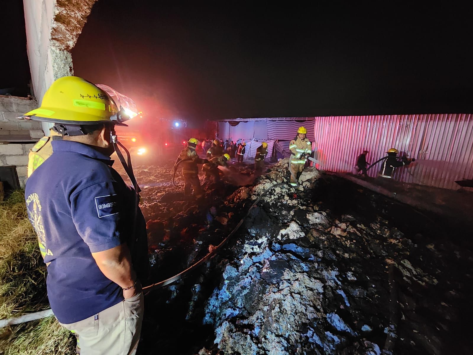 Atiende Policía de Chiautempan y Bomberos incendio en fábrica textil