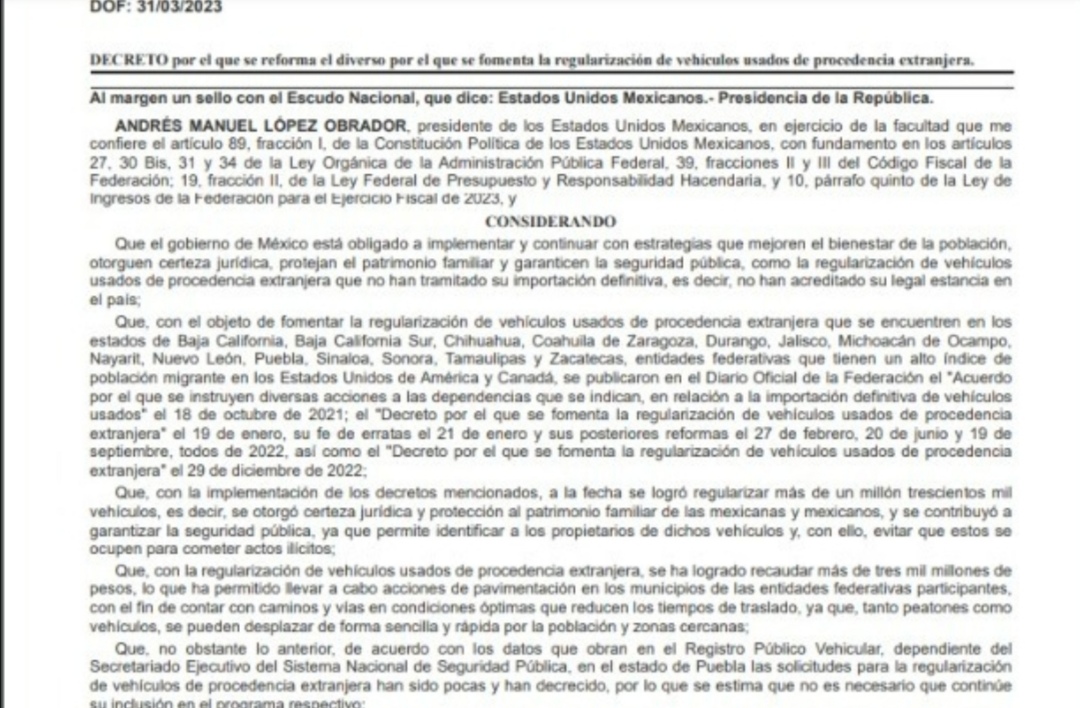 CUMPLIRÁ TLAXCALA CON DECRETO PARA REGULARIZAR VEHÍCULOS USADOS DE PROCEDENCIA EXTRANJERA
