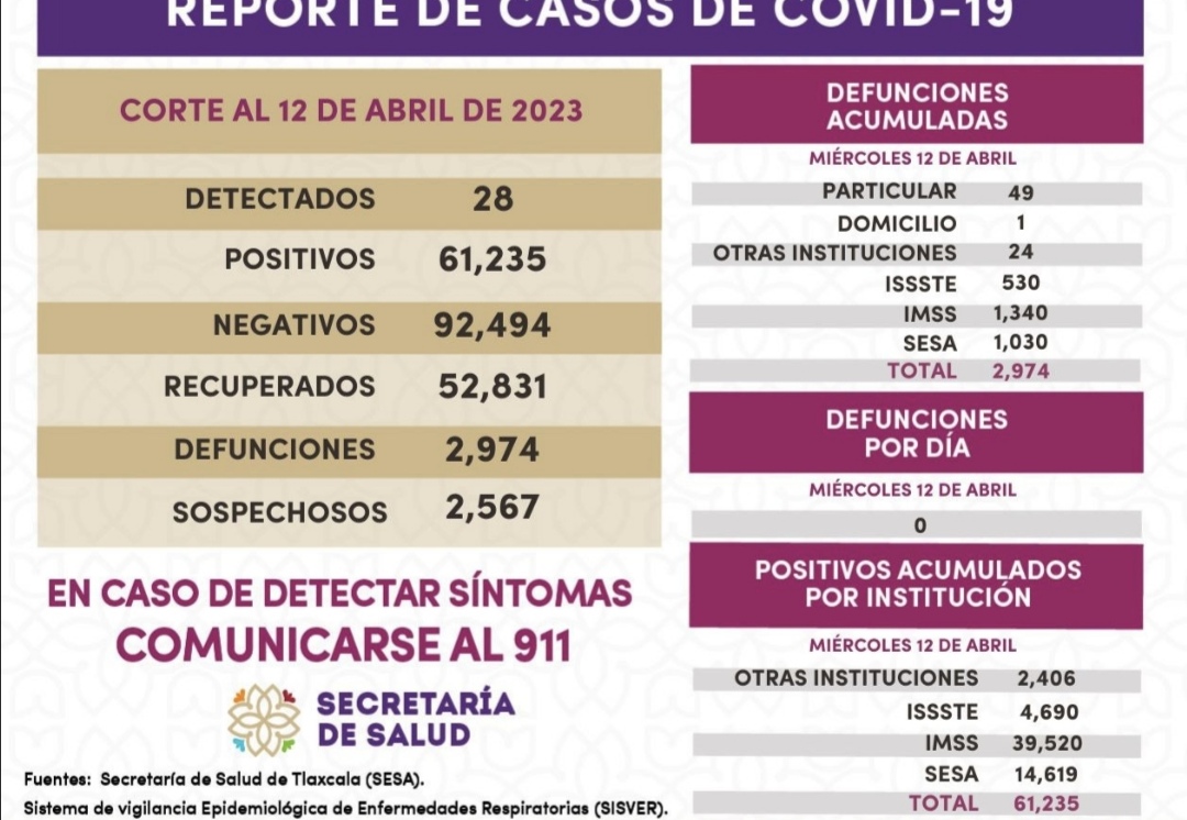 HOY, 28 CASOS POSITIVOS Y CERO DEFUNCIONES DE COVID-19 EN TLAXCALA