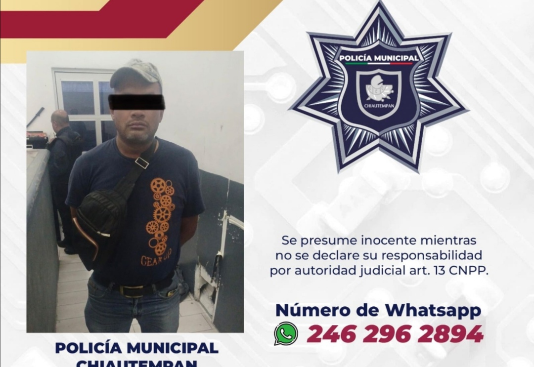 Asegura Policía de Chiautempan a sujeto por intento de robo
