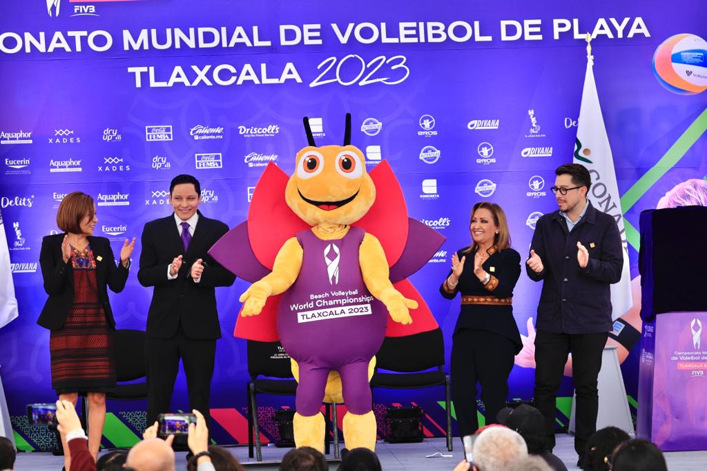 PRESENTAN BALÓN Y MASCOTA OFICIAL DEL MUNDIAL DE VOLEIBOL DE PLAYA TLAXCALA 2023