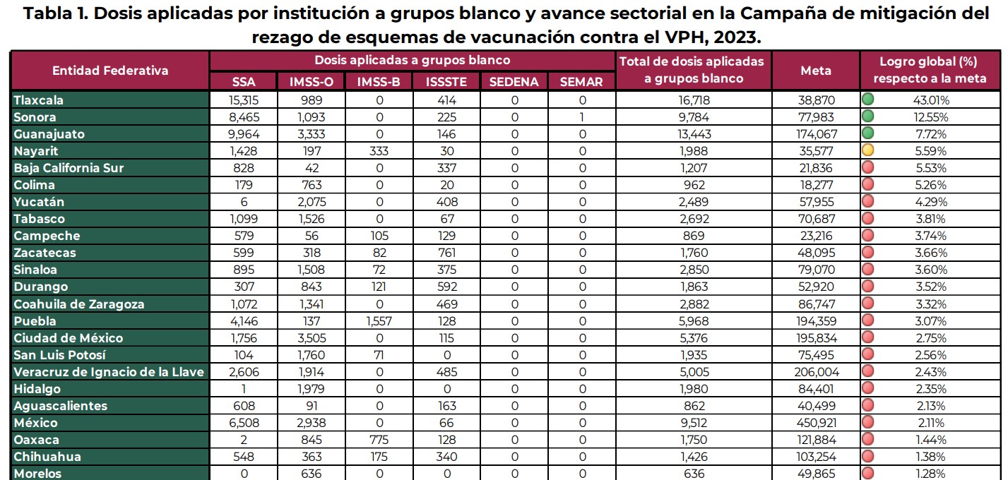 OCUPA TLAXCALA PRIMER LUGAR NACIONAL EN COBERTURA DE VACUNACIÓN CONTRA VPH