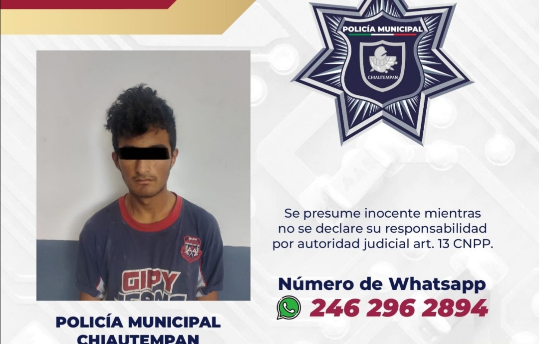 Pone a disposición policía de Chiautempan a masculino por intento de robo