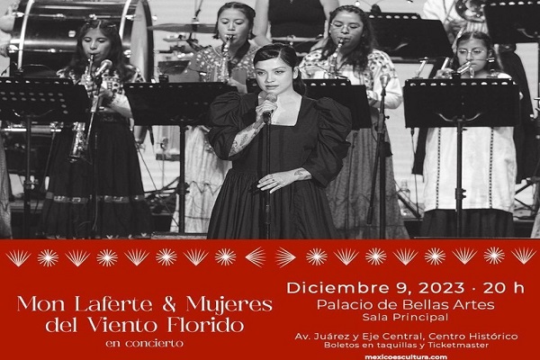 La Secretaría de Cultura del Gobierno de México, a través del Instituto Nacional de Bellas Artes y Literatura (Inbal), presenta el concierto “Mon Laferte & Mujeres del Viento Florido” en la Sala Principal del Palacio de Bellas Artes, el 9 de diciembre de 2023, ofreciendo un programa artístico integrado con música y canciones tradicionales oaxaqueñas […]
