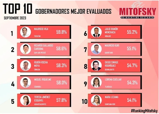 LORENA CUÉLLAR EN EL RANKING DE LOS GOBERNADORES CON MAYOR APROBACIÓN