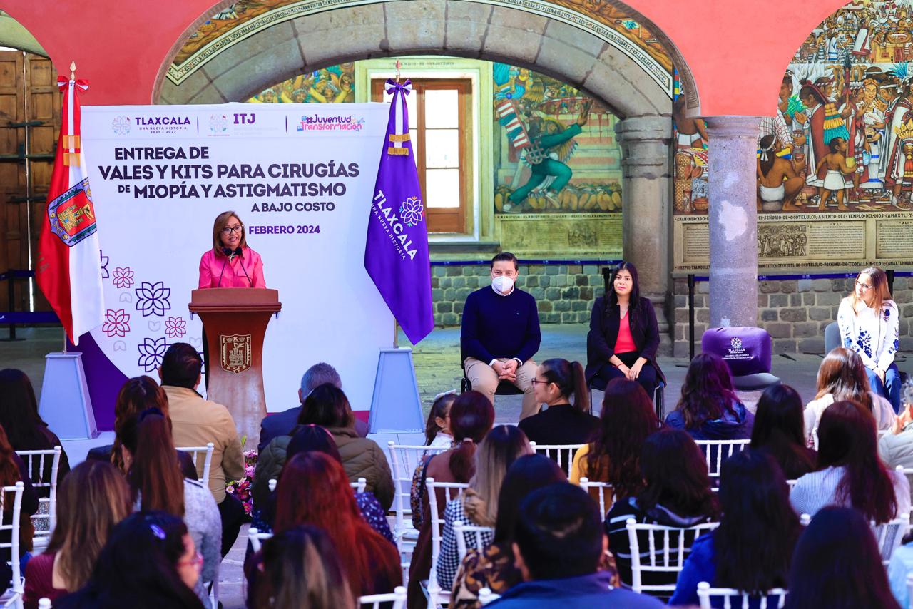 ENTREGA GOBERNADORA VALES Y KITS PARA CIRUGÍA DE MIOPÍA Y ASTIGMATISMO A JÓVENES TLAXCALTECAS