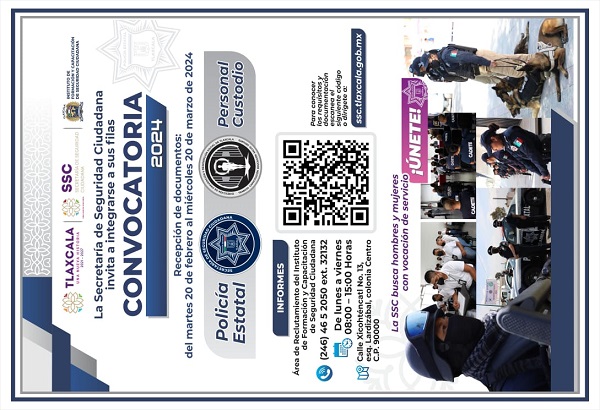 Con el objetivo de formar más y mejores policías que garanticen la protección y seguridad de la población tlaxcalteca, la Secretaría de Seguridad Ciudadana (SSC) invita a mujeres y hombres interesados a participar en el proceso de selección e ingreso a la Policía Estatal y Personal Custodio, para desarrollarse en el ámbito policial con responsabilidad, […]