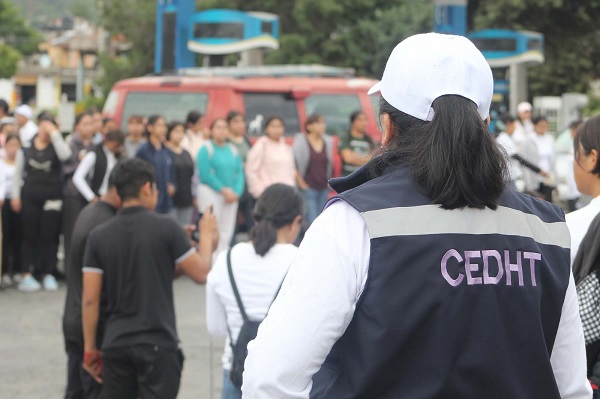 Brindó CEDHT acompañamiento a manifestación de estudiantes de la Normal Rural de Panotla