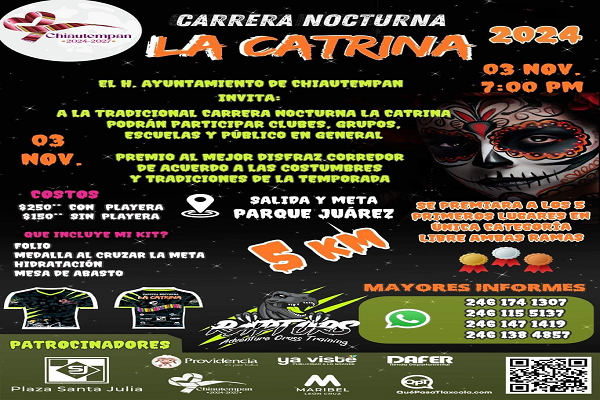 En Chiautempan se llevará a cabo la carrera nocturna de “La Catrina”