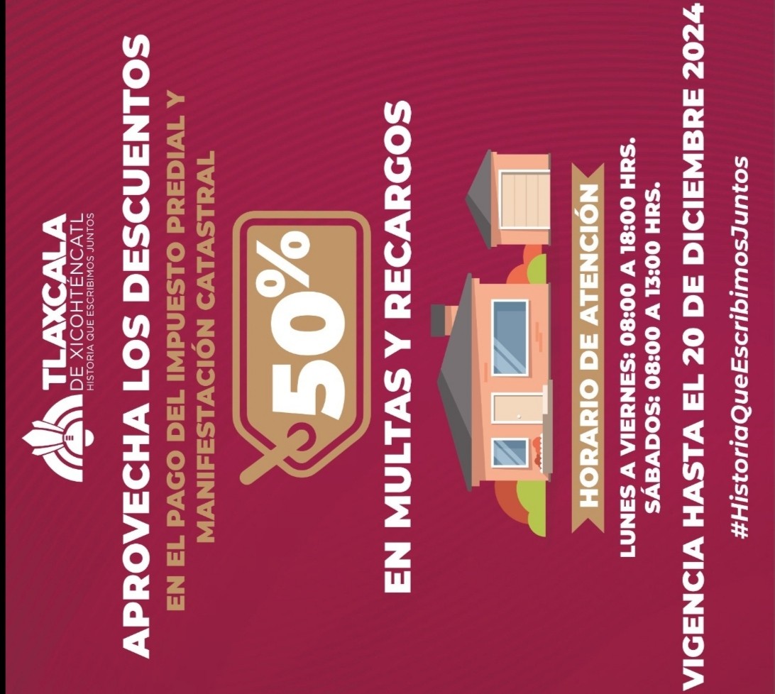 El Ayuntamiento reitera su compromiso con el fortalecimiento de la economía local e invita a todos los contribuyentes a aprovechar esta oportunidad de regularización fiscal que estará vigente hasta el 20 de diciembre de 2024 El Ayuntamiento de Tlaxcala de Xicohténcatl puso en marcha una campaña de descuentos en multas y recargos en el pago […]
