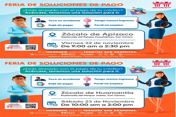 El viernes 22 y sábado 23 de noviembre se realizarán Ferias de Soluciones de Pago en los municipios de Apizaco y Huamantla, para apoyar a las personas a regularizar sus créditos. El Instituto del Fondo Nacional de la Vivienda para los Trabajadores (Infonavit) realizará sus Ferias de Soluciones de Pago en los municipios de Apizaco y […]