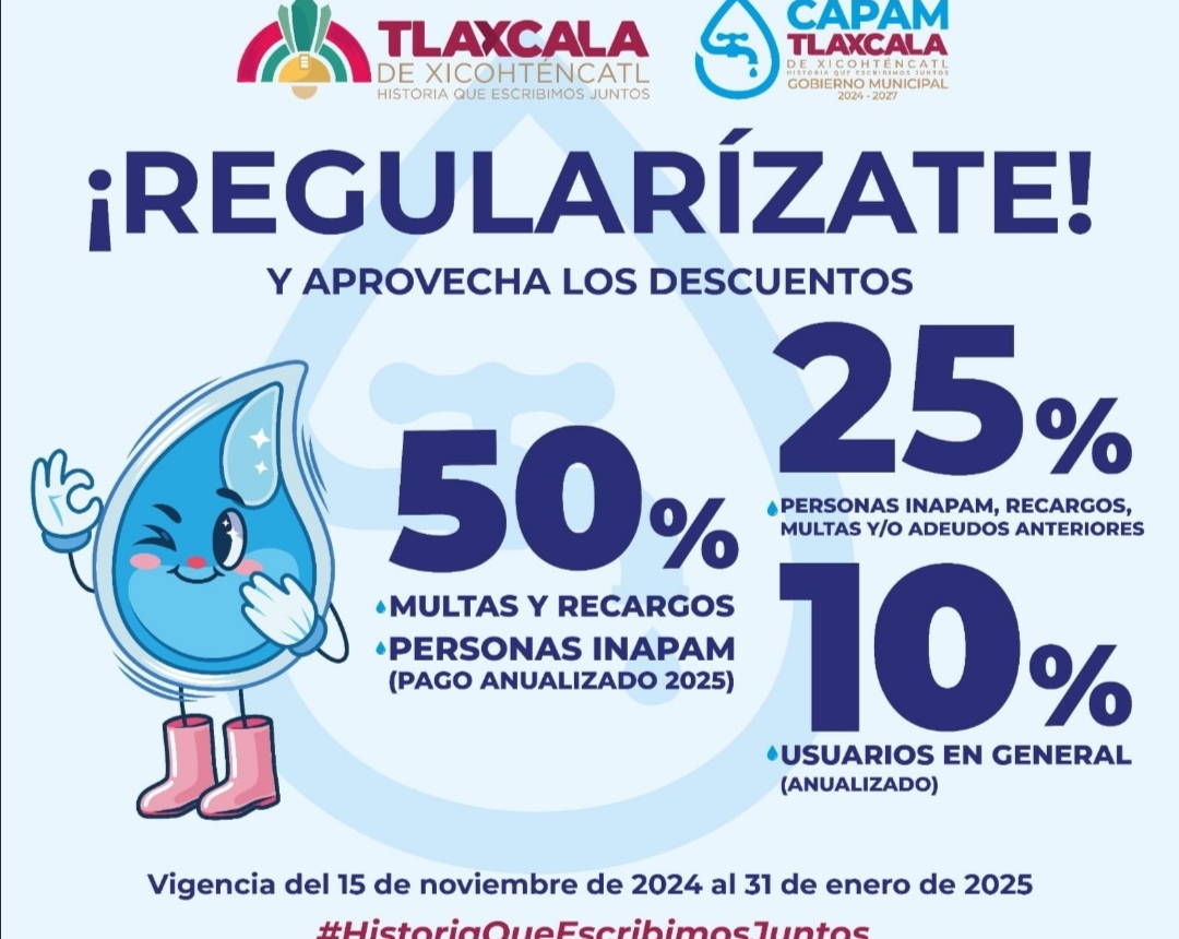 Esta campaña incluye descuentos en multas y recargos, así como el pago anualizado 2025 para usuarios que estén al corriente con el servicio Con el objetivo de apoyar la economía de las familias y fomentar el cumplimiento en el pago del servicio de agua potable y alcantarillado, el Ayuntamiento de Tlaxcala de Xicohténcatl, en coordinación […]