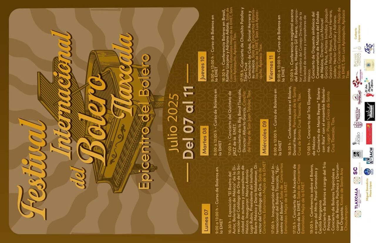 Del 7 al 11 de julio, artistas de México, Cuba y otros países se reunirán para celebrar al bolero como patrimonio cultural vivo. La Secretaría de Cultura (SC) anunció el Primer Festival Internacional del Bolero, que se llevará a cabo, del 7 al 11 de julio, en Tlaxcala bajo el lema “Epicentro del Bolero”, con […]
