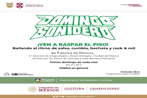 Las y los visitantes disfrutarán el primer domingo de cada mes del a Domingo sonidero, y el tercer sábado de mes será para el Sábado de palomazo. Las agrupaciones o solistas que deseen presentarse en esta actividad pueden registrarte llamando al 55 41 55 02 00, extensiones 9460 y 9719 o enviando un correo electrónico a animacioncultural@cultura.gob.mx
