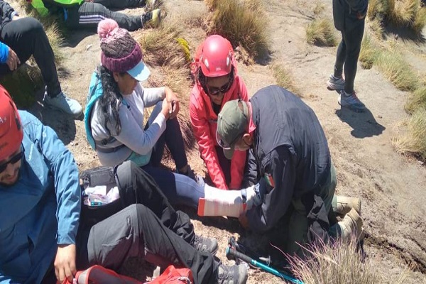 Como dicta el protocolo y con el consentimiento de la mujer, se realizó una auscultación que presentaba una posible fractura, por lo que se le brindó los primeros auxilios y colocación de una férula para inmovilizar la extremidad y así poder descenderla a un lugar seguro, con apoyo de una silla y camilla hasta el paraje conocido como “El árbol de la placa”, lugar donde ya los esperaban.