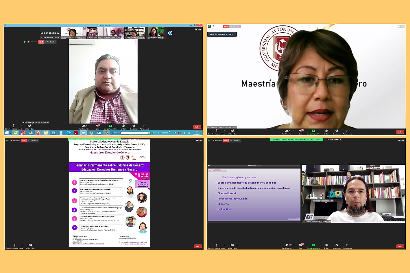 Con el objetivo de ofrecer una visión multidisciplinaria para diseñar ambientes de igualdad entre hombres y mujeres, la Universidad Autónoma de Tlaxcala (UATx), a través del Programa Universitario para la Autorrealización y la Igualdad de Género (PUAIG), la Facultad de Trabajo Social, Sociología y Psicología, los Cuerpos Académicos (CA) Políticas Públicas, Sociedad y Estudios de Género, así como la Maestría en Estudios de Género, dieron inicio a las actividades del “Seminario permanente sobre estudios de género: Educación, derechos humanos y género”, el cual concluye el próximo 15 de julio, con la asistencia virtual de docentes y estudiantes provenientes de Perú, Argentina, Honduras, Chile, Bolivia, Guatemala , Colombia, Venezuela, Uruguay, El Salvador y México.