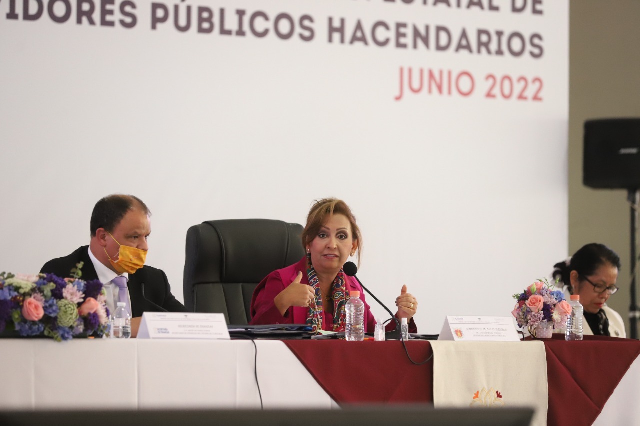 Asimismo, la diputada María Guillermina Loaiza Cortero, presidenta de la Comisión de Finanzas y Fiscalización del Congreso del estado, refirió que en cumpliendo con la normativa del Código Financiero para el Estado de Tlaxcala y sus Municipios, esta reunión tiene por objeto reconocer el esfuerzo, la dedicación y el compromiso con los servidores públicos hacendarios.