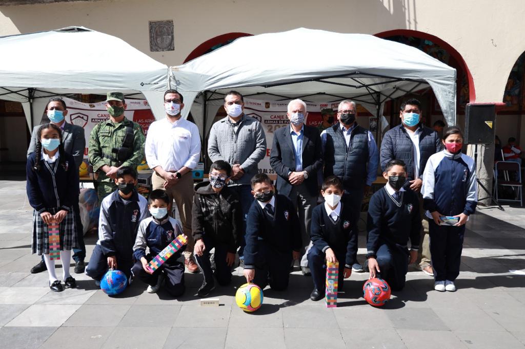 Esta mañana en el Parque Juárez de la cabecera municipal en Chiautempan, se llevó a cabo el inicio de Canje de Armas, que consiste en cambiar un arma por algún electrodoméstico y/o armas de juguete por algún didáctico, a llevarse a cabo del 20 al 25 de junio.