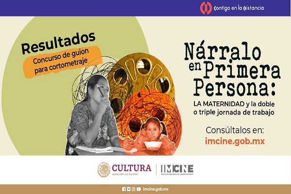 La Secretaría de Cultura del Gobierno de México, a través del Instituto Mexicano de Cinematografía (Imcine), da a conocer a los cinco proyectos ganadores del tercer concurso de guiones para cortometrajes “Nárralo en primera persona”, que en esta edición estuvo dedicado a la maternidad y la doble o triple jornada de trabajo.