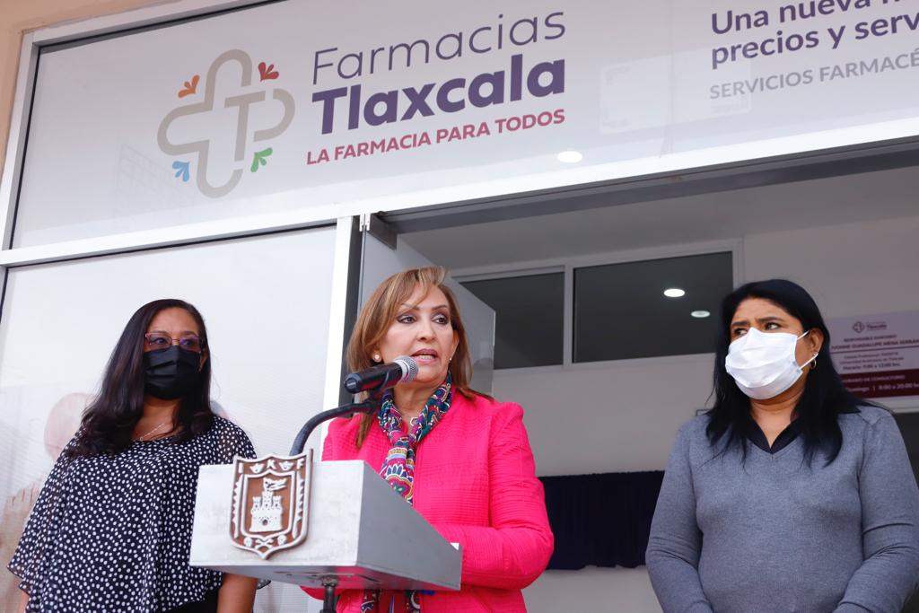 La gobernadora Lorena Cuéllar Cisneros realizó el corte de listón inaugural y develación de la placa de una sucursal de la Farmacia de Pensiones Civiles en el municipio de San Pablo Apetatitlán, en la que se invirtieron 2 millones 100 mil pesos en inventario de medicamentos y 235 mil pesos en infraestructura para dicha sucursal que atenderán a 2 mil 800 pensionados, jubilados y trabajadores en activo, con el objetivo de brindar mejores servicios en materia de salud. En el acto protocolario, la titular del Ejecutivo local indicó que esta farmacia cuenta con tres consultorios médicos equipados, entre otros beneficios, para atender a 2 mil 800 pensionados, jubilados y trabajadores en activo. “Esta es una de las farmacias que dará atención especialmente a personal de seguridad pública, sindicalizados, pero desde luego a todos los trabajadores”.