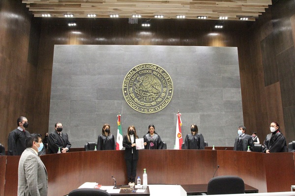 En sesión ordinaria de Pleno, la Magistrada Presidenta del Tribunal Superior de Justicia y del Consejo de la Judicatura del Estado (TSJ-CJE), Mary Cruz Cortés Ornelas, tomó protesta a Jessica Piedras Ramos, profesionista que cumplió con los requisitos para el cargo de Juez Municipal.