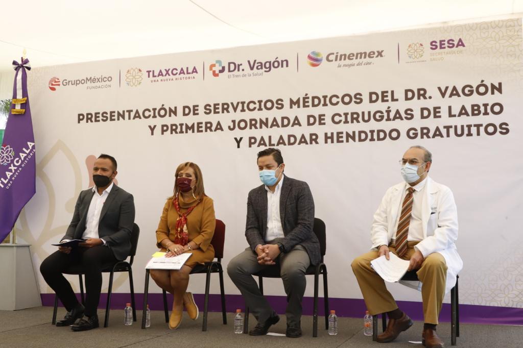Estas acciones médicas van a prevenir enfermedades, fomentarán la detección temprana y el tratamiento oportuno, además refrendan el compromiso de la actual administración del Gobierno de Tlaxcala de respaldar las acciones en salud para toda la población del estado, afirmó la titular del Ejecutivo estatal, en rueda de prensa que se realizó en las instalaciones de la Secretaría de Salud (SESA), acompañada por el secretario de Salud y director general del O.P.D. de Salud, Rigoberto Zamudio Meneses; el gerente Médico del Dr. Vagón de la Fundación Grupo México, Ricardo Reyes Diaz y el cirujano plástico y líder del programa de Labio y Paladar Hendido, Blas David Domínguez Reyes.